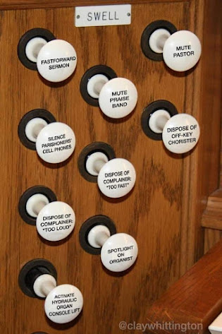 - Eucharistic prayer choice conveyed to organist so the correct 'twiddly bits' are ready